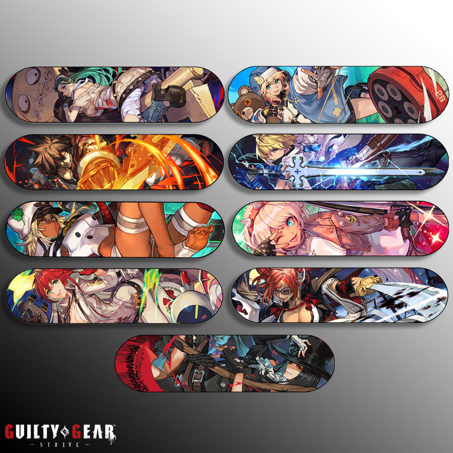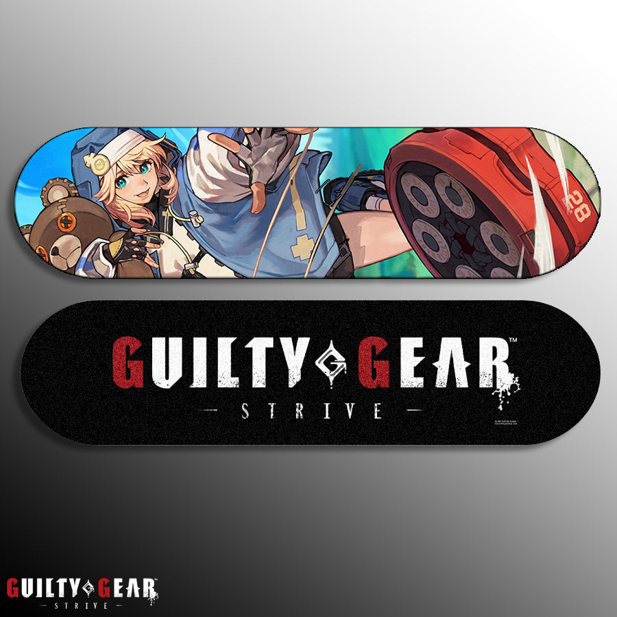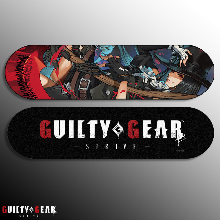 This deck features a two-sided design: the ride side displays the Guilty Gear -STRIVE- logo, while the back side showcases the full character illustration for maximum visual impact. The elongated deck format enhances the sense of scale and motion, making it an eye-catching display from every angle—ideal for gaming rooms, collector showcases, and curated interiors.